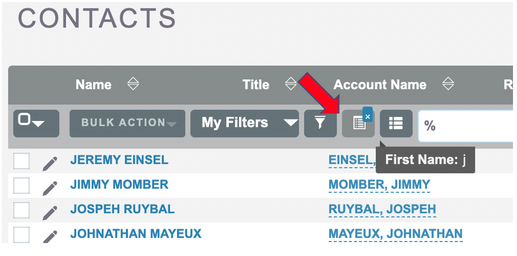 A common filter for the Accounts module is to look at any Account that you are tracking and following. To activate this filter, just check the "My Items" box in the Quick Filter panel.